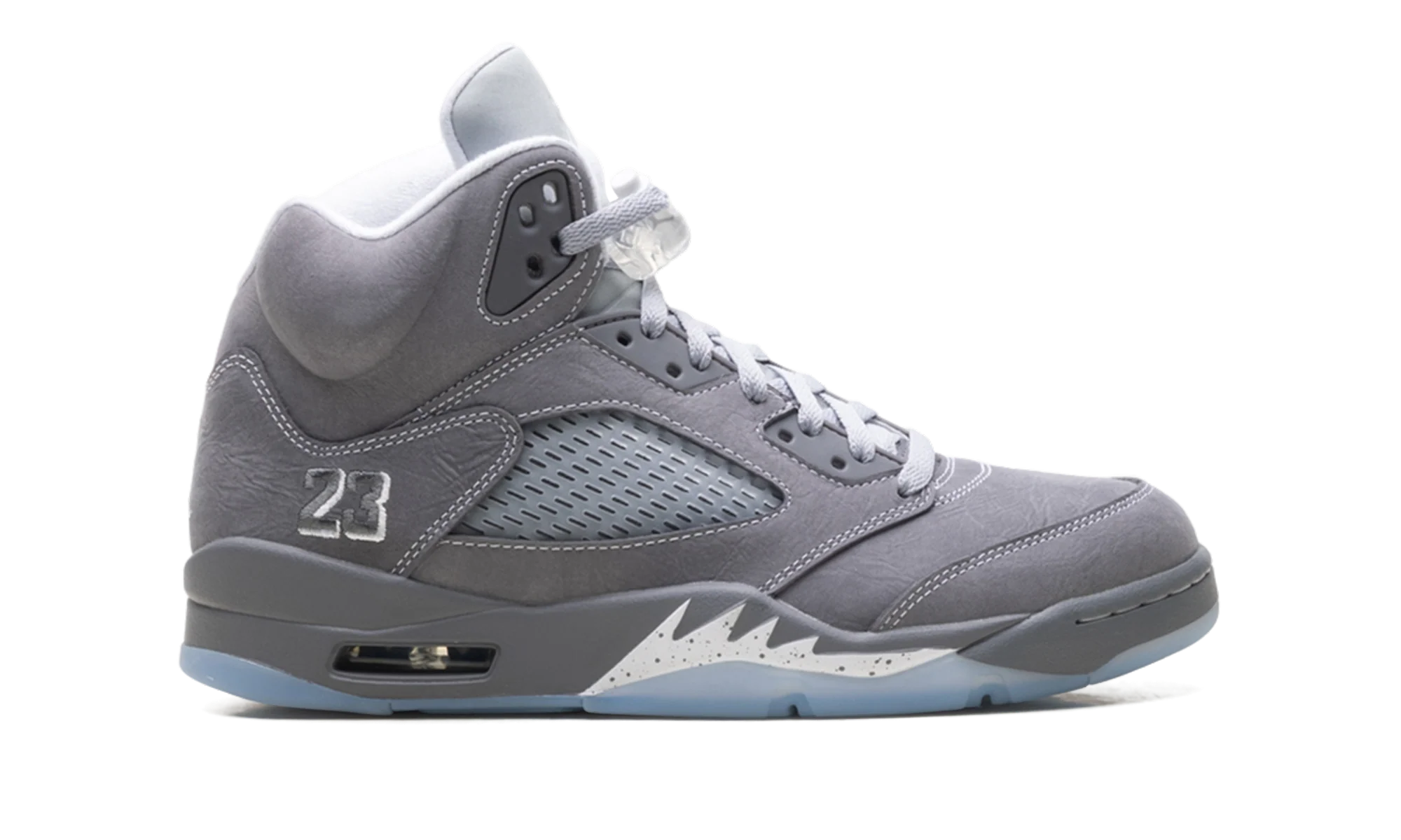 The Air Jordan 5 "Wolf Grey" delivers a clean, neutral aesthetic to Tinker Hatfield’s fighter-plane-inspired design. Featuring a premium nubuck upper in a versatile "Wolf Grey" finish, this release is highlighted by a signature silver 3M reflective tongue. The shark-tooth midsole and translucent icy outsole stay true to the 1990 original, providing a sophisticated look for the street. It is a refined, high-energy masterpiece that offers legendary comfort and a timeless, low-profile colorway for any elite collection.